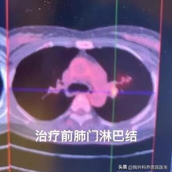 在3个月的靶向治疗后,肿瘤已经缩小了一半,肺门淋巴结的代谢也降低了,评估后准备帮他做手术。